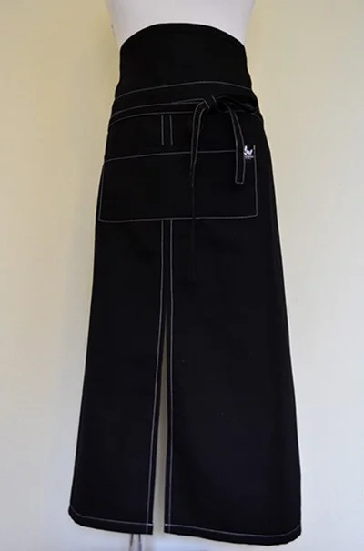 The base apron is black with black stitch and the price starts at 28.50 you can change the base colour or stitching colour to suit your company and add logo embroidery.