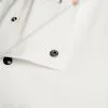 Our female white chef jacket with black back mesh is super easy to get on and off with the matt black push studs.