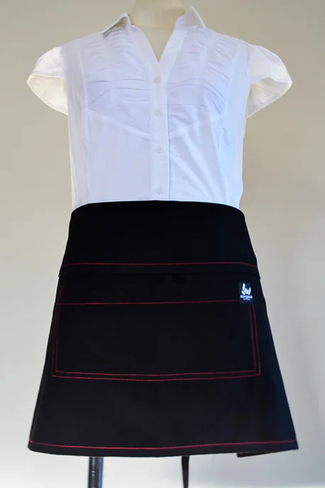 Our crisp white waist apron is a formal and professional full-length apron perfect for the front of house in high-class venues. The apron has a top fold of fabric so there’s no annoying apron ties across your stomach area which also makes it easier to wear and work in as you don’t need to retie after reaching up to fetch an item from a high shelf. They also have tab’s at the back for hanging a tea towel or cloth through too. High-quality poly-cotton fabric for breathability, resilience and durability. Easy to wash, hang to dry, no need to iron.